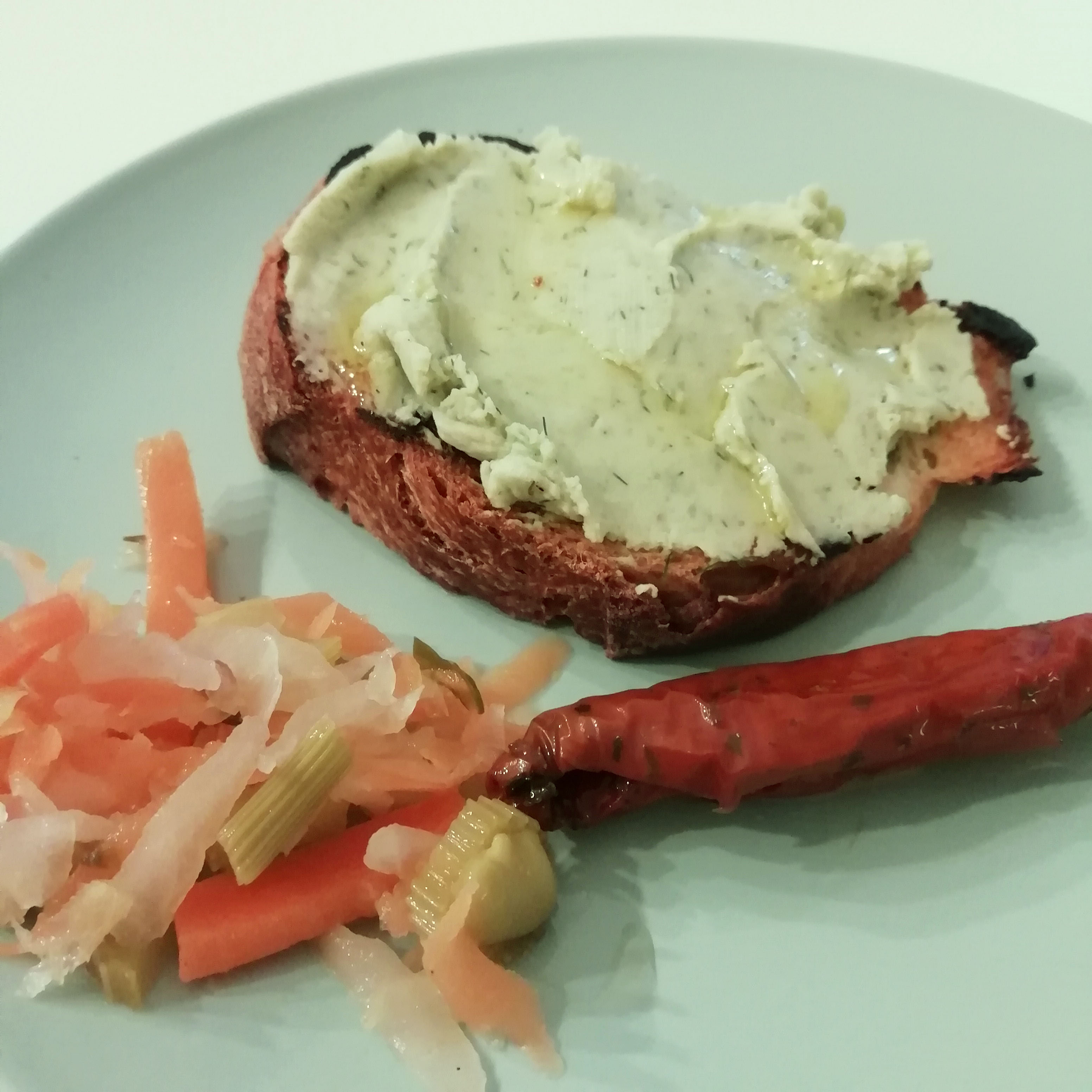 Si può usare per condire la pasta, come ingrediente che aggiunge cremosità a panini e tramezzini, o semplicemente su un crostino come ho fatto io, magari con un filo di olio buono. L’ho mangiata insieme alle mie verdure lattofermentate e un pomodorino sott’olio.