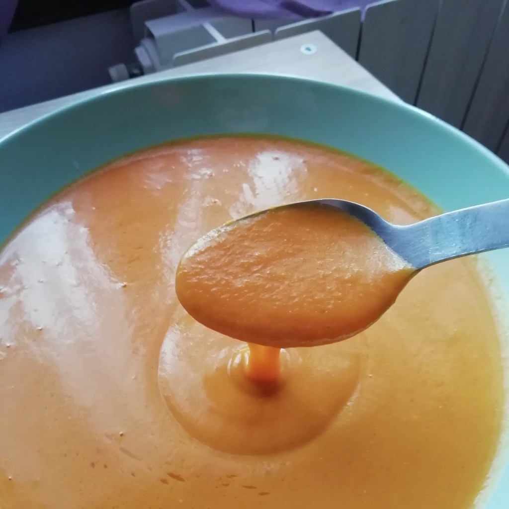 Variante: Con gli stessi identici ingredienti possiamo preparare anche un secondo. Dopo aver aggiunto la zucca a pezzi e mescolato bene, aggiungere l’aglio e lo zenzero e infine il latte di cocco, portare a cottura e servire senza frullare accompagnato da riso basmati semplicemente cotto a vapore (o bollito).