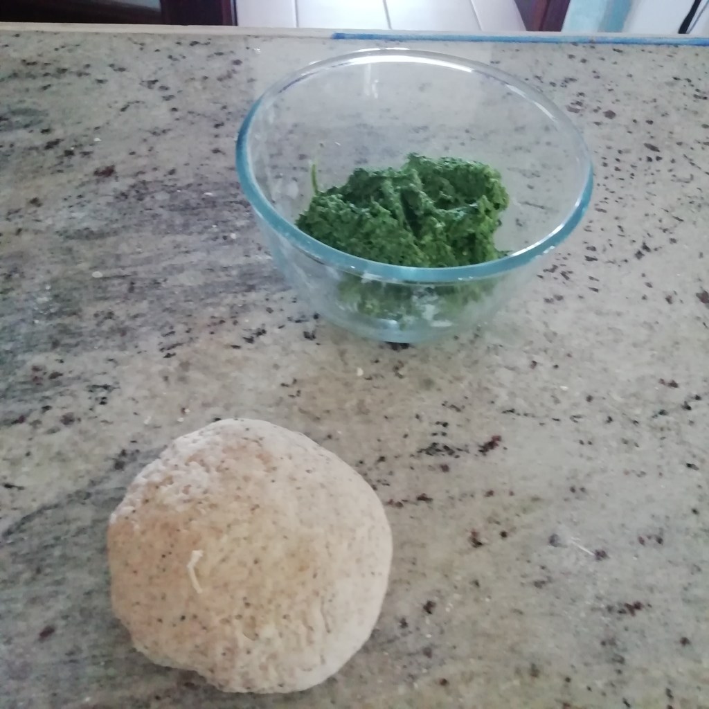 Ho frullato insieme le mandorle, noci , il lievito, la salvia e l’erba cipollina, poi ho aggiunto le erbe e la patata e ho tritato nuovamente, aggiustato di sale e pepe