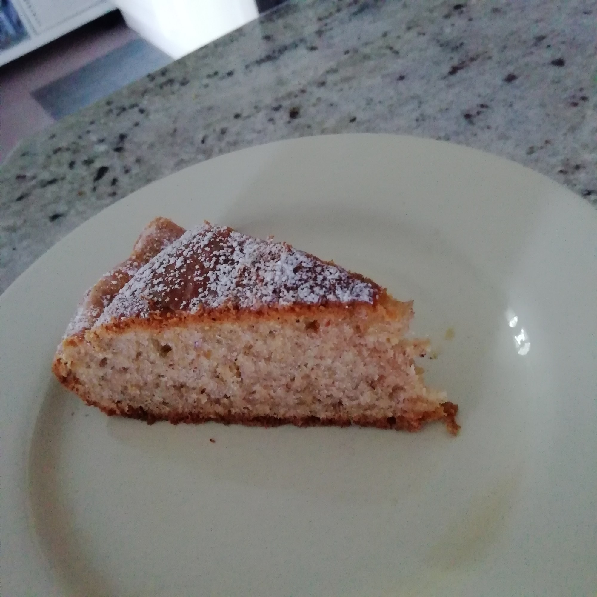 La torta viene umida e naturalmente dolce, ma se preferite si può aggiungere un po’ di zucchero, direi 50/60 grammi di canna o bianco. La trovo gradevole e il profumo della banana resta piacevolmente caratteristico.