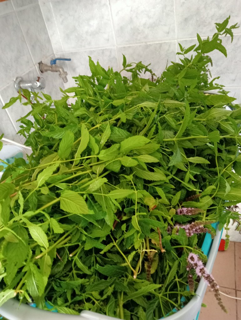 Ho distillato anche la menta nel mio campo, un regalo dei precedenti abitanti marocchini, che si è sparsa ovunque colonizzando vaste zone, un po’ di melissa (per l’esigua quantità ne ho ricavato solo prezioso idrolato) e vorrei provare anche con l’alloro, mentre per il rosmarino aspetterò perché non è fiorito.