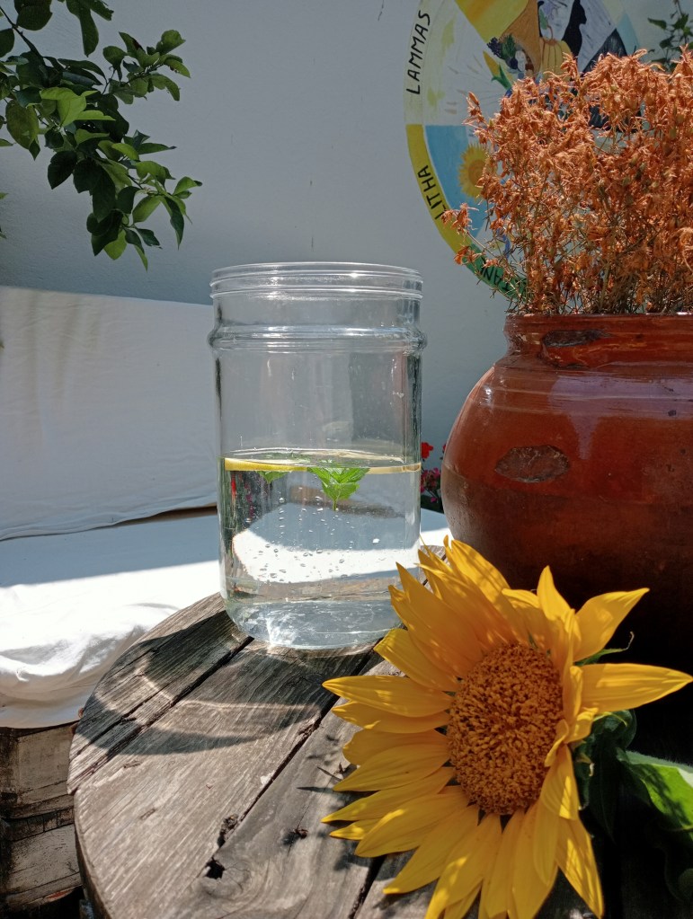 Sempre con idrolato di menta preparo una rinfrescante bevanda aggiungendone qualche cucchiaio (a gusto) all’acqua fredda, volendo si può aggiungere qualche fettina di limone.