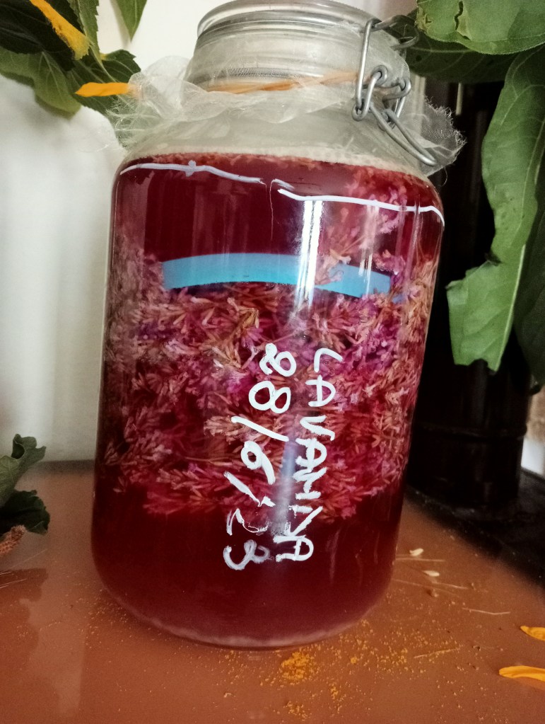 La pianta concede la sua parte vitale ed eterica, l’olio essenziale concentra l’essenza della pianta che si svuota completamente. Trovo sempre un po’ triste inserire una pianta vitale e fresca e ridurla in una massa grigiastra, ma il risultato è veramente sublime. Lo scarto è comunque utile, lo metto nel pollaio perché contenendo ancora oli essenziali tiene lontani gli insetti e ha un’azione debolmente antisettica e antibatterica, o lo uso come pacciamatura per gli stessi motivi.