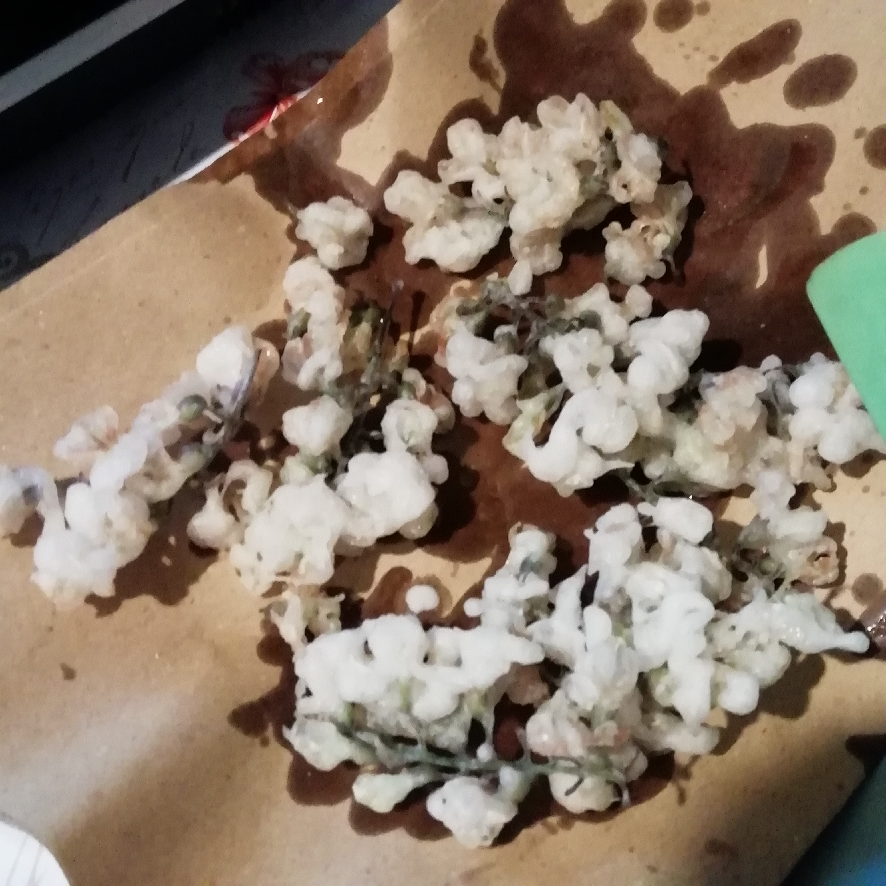 Friggere in un tegame profondo con parecchio olio (io ho usato olio di arachidi) in modo che galleggi liberamente. Scolare e servire dopo averle cosparse di sale se le vogliamo come antipasto o snack salato, oppure con zucchero o meglio ancora miele se le vogliamo dolci. Nella versione dolce si esalta il sapore proprio dell’acacia.