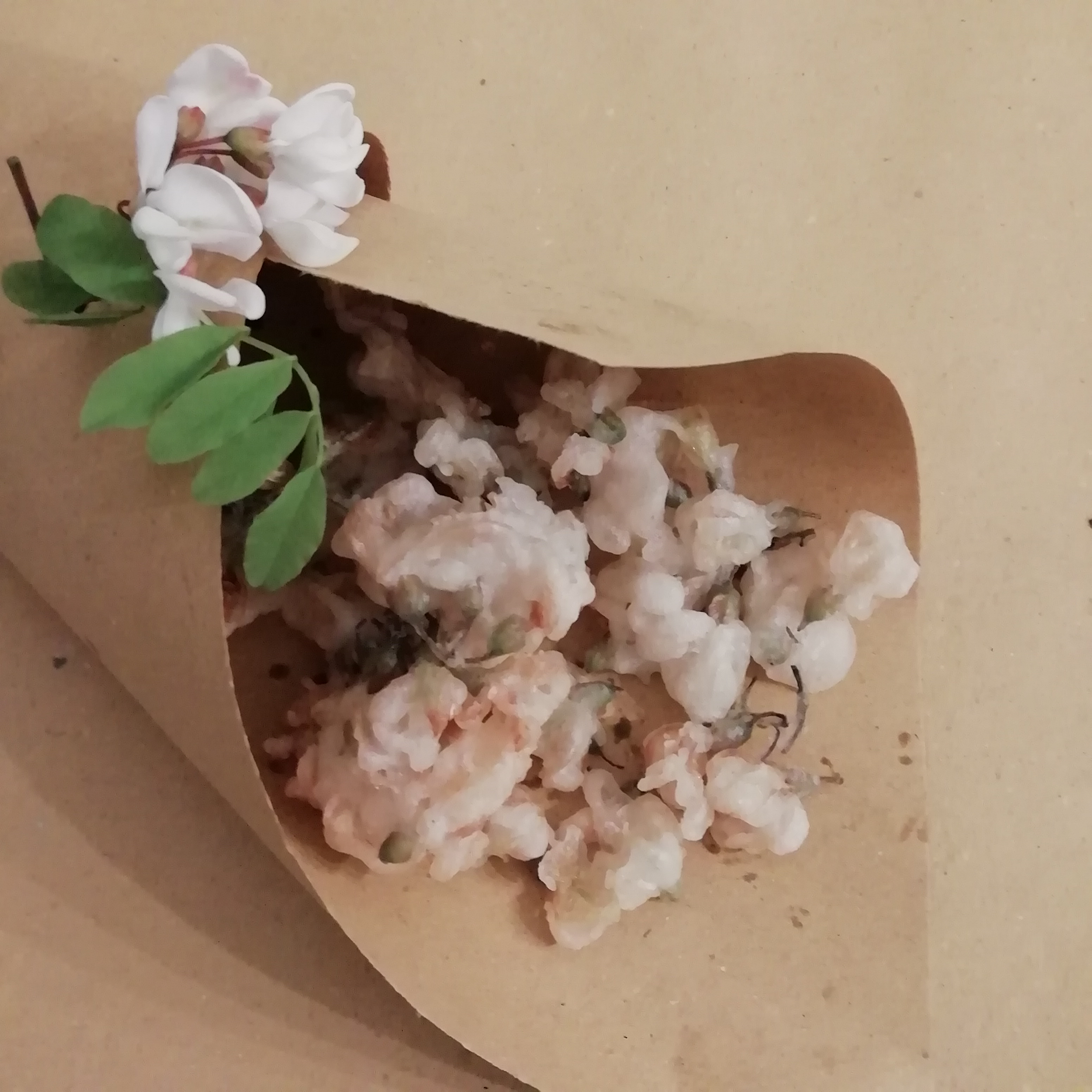In questi giorni stanno fiorendo le acacie (che acacie non sono, ma robinia pseudoacacia), con i magnifici fiori bianchi a grappolo profumati meravigliosamente che attirano api . Attorno a casa mia ne ho parecchie che si sono disseminate spontaneamente e sono uno spettacolo per gli occhi e per il cuore. ho pensato di farne una frittura, visto che ne avevo sentito parlare.