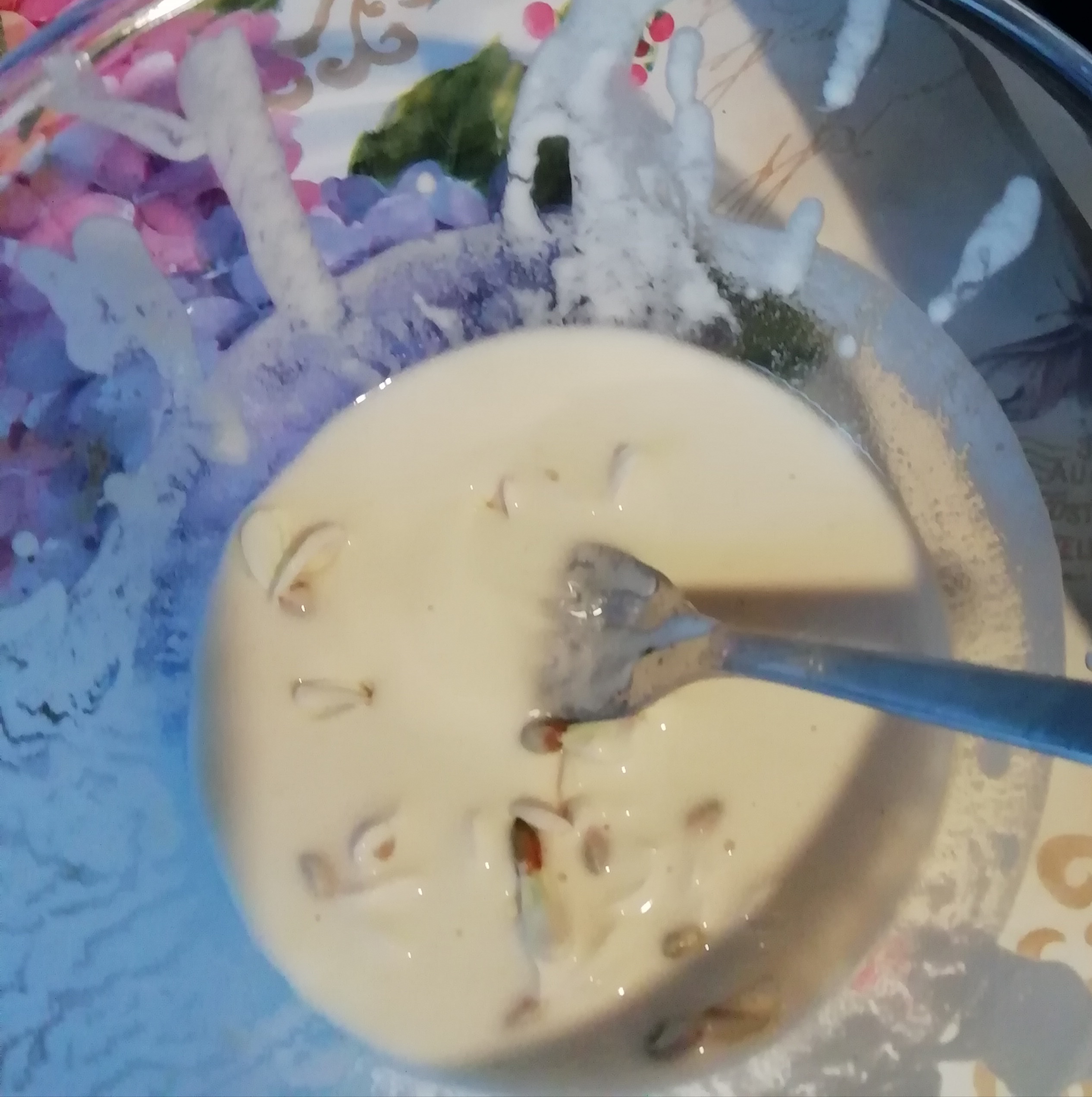 Ho immerso i grappolini di fiori nella pastella che deve essere abbastanza corposa da attaccarsi ai fiori ma abbastanza liquida da non attaccarsi in eccesso